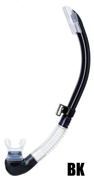 The periphery of the valve always remains at the lowest point even when snorkelling upright at the water surface, so water is easily cleared at all times. It prevents gurgling or sucking water when breathing.